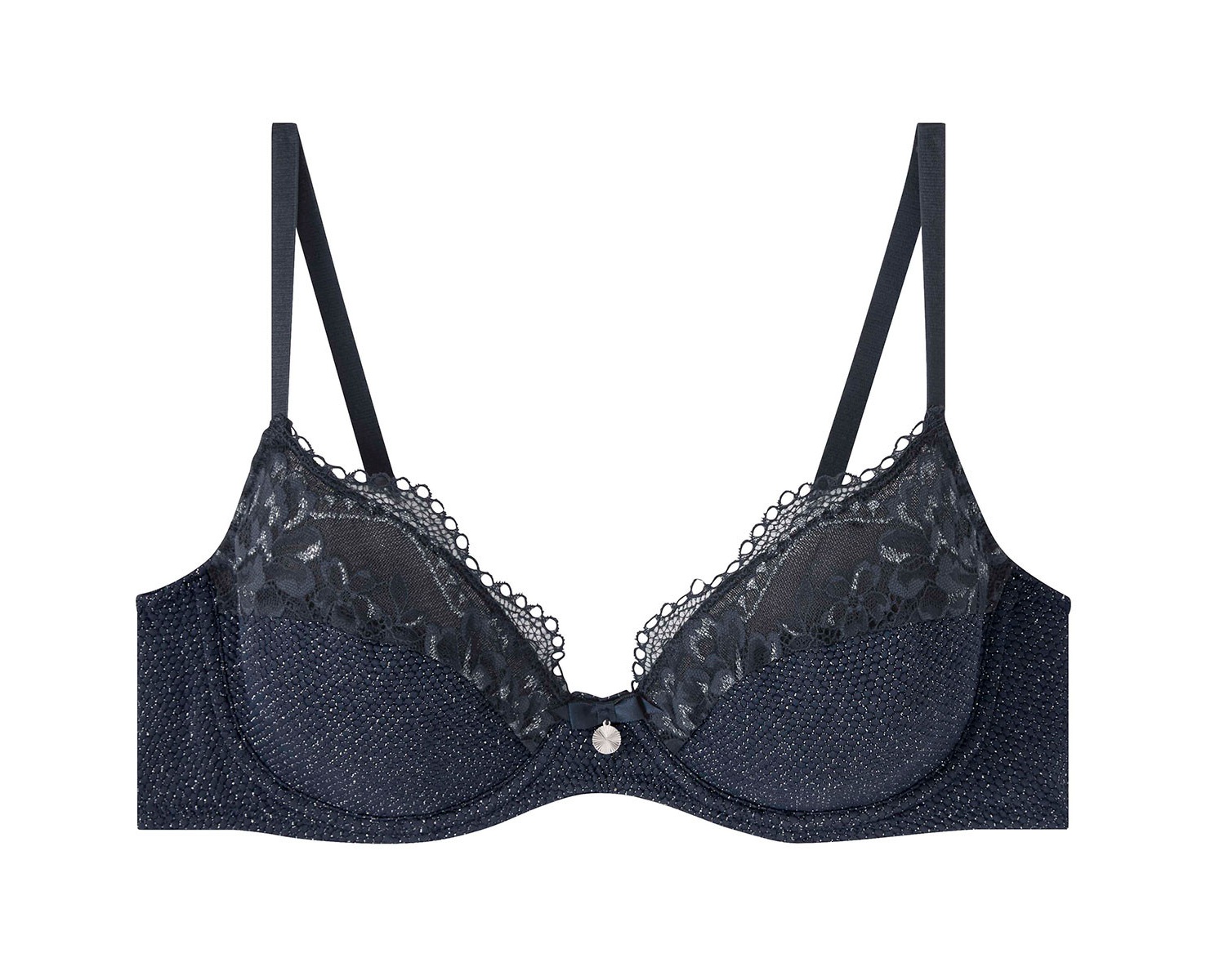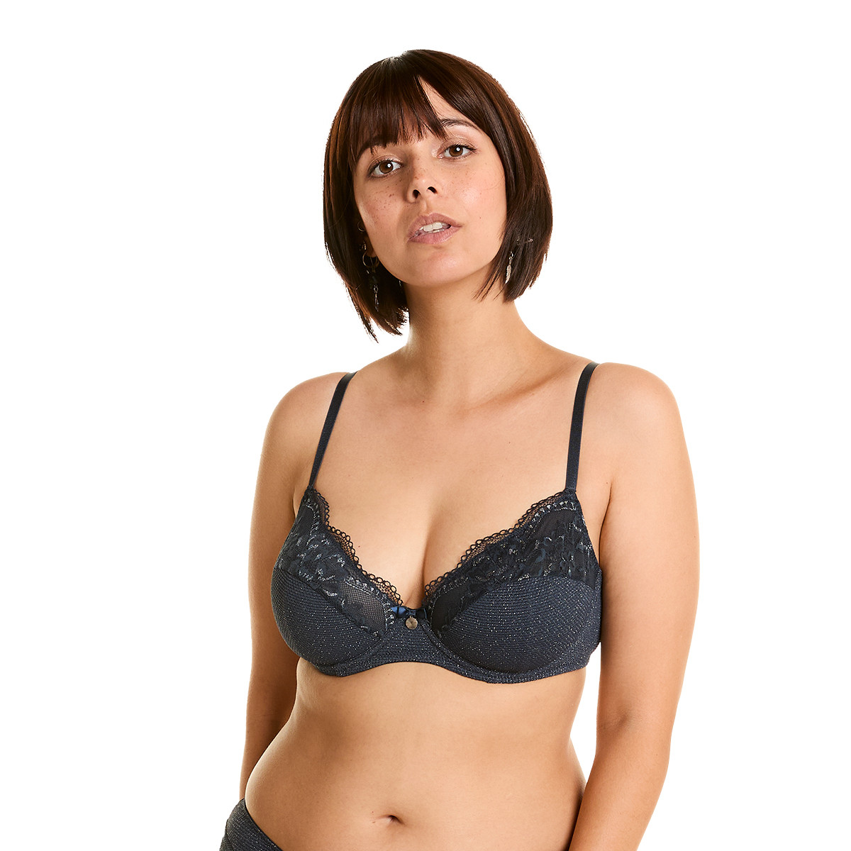 - Composition: Dentelle : 81% polyamide, 18% elasthanne, 1% fibres métaliques. Matière secondaire : 89% polyamide, 6% fibres métaliques, 5% elasthanne. Doublure bonnets : 100% polyester.